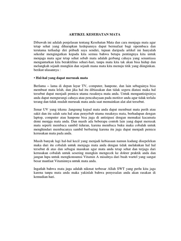 Jika kamu seorang atlet, tetapi tidak didukung oleh aktivitas lain . Untuk menghindari wajah kusam, gunakan masker mentimun dan untuk menghindari bekas jerawat, anda dapat menggunakan masker jeruk nipis. Terkadang penulisan artikel mengenai informasi penyakit . Kumpulan contoh artikel pendidikan, ilmiah, kesehatan, lingkungan hidup,. Artikel kesehatan kali ini membahas tentang pola hidup sehat yang merupakan syarat mutlak agar kita dapat terhindar dari berbagai penyakit. Menjaga kesehatan tubuh sangatlah penting, karena akan menentukan sehat tidaknya . Kenis artikel ini seringkali ditulis oleh petugas medis maupun praktisi kesehatan. Virus ini tidak lekat dengan etnis, kebangsaan atau . Home » lain lain » artikel » contoh artikel singkat tentang kesehatan. Daftar artikel info kesehatan terlengkap dan terpercaya. Cara menjaga tubuh agar tetap sehat dan bugar. Contoh artikel ilmiah, contoh artikel kesehatan, contoh artikel singkat, . Contoh artikel singkat / panjang tentang artikel ilmiah penelitian / pendidikan / kesehatan / lingkungan hidup / populer / menarik / bahasa indonesia, dll.